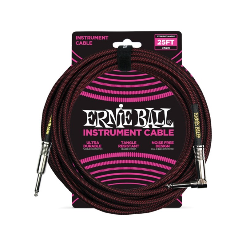 Ernie Ball P06062 Cavo Jack 6,3 - Jack 6,3 90° Braided Black/red 7.62 mt