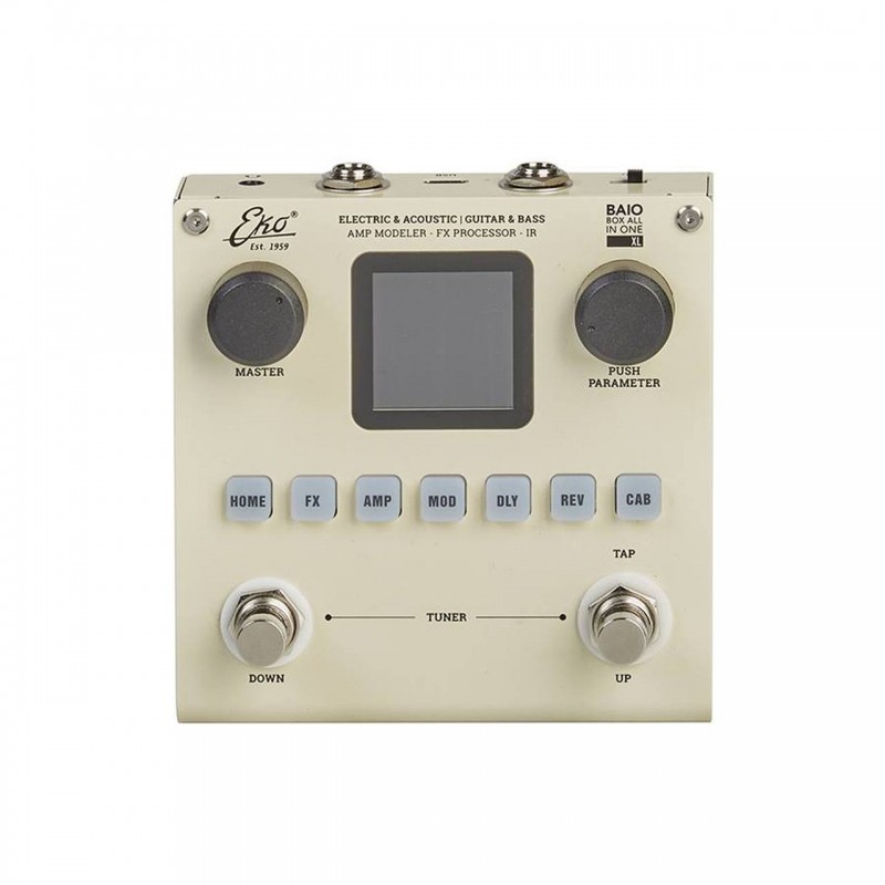 Il pedale multieffetto EKO BAIO XL è la soluzione definitiva per chitarristi e bassisti alla ricerca di versatilità, qualità sonora e portabilità in un solo dispositivo. Progettato per soddisfare le esigenze di chi suona chitarra elettrica, acustica, classica o basso, EKO BAIO XL racchiude in sé tutta la potenza di un'intera pedaliera professionale.