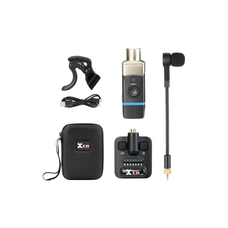 l Xvive U7 è un sistema wireless progettato per strumenti a fiato come sax, tromba e trombone, offrendo una connessione senza fili stabile e un suono ad alta fedeltà. Con una banda di trasmissione a 2,4 GHz e 6 canali selezionabili, il sistema garantisce prestazioni affidabili anche in ambienti affollati. Il microfono a collo d'oca supercardioide con SPL massimo di 142 dB è ottimizzato per catturare ogni dettaglio del timbro del tuo strumento, restituendo un suono naturale e bilanciato.