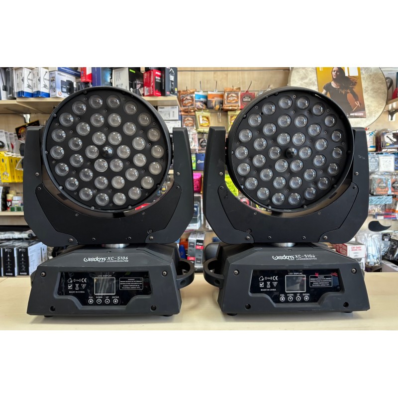 Wisdom XC5106 Coppia Testa mobile Wash Led 360W (36×10Watt) RGBW con Flight Case Usato